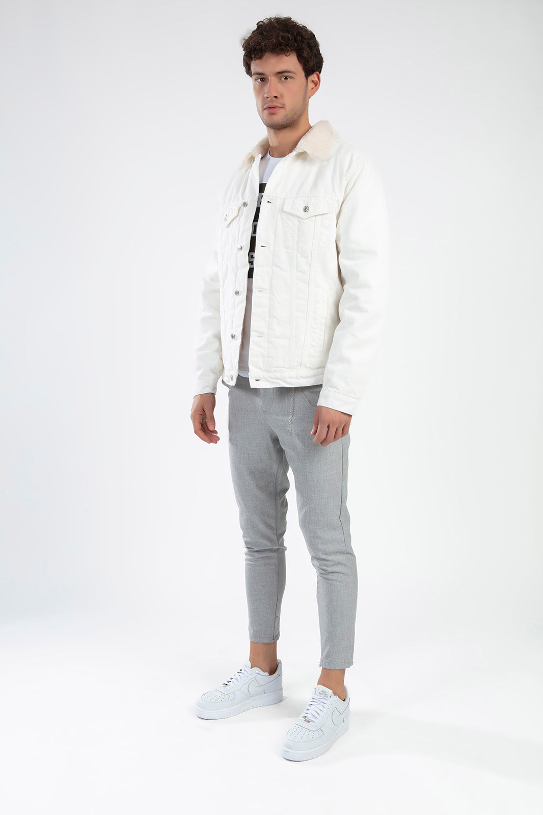 This premium denim jacket features a classic button-down front, dual chest pockets, and a structured yet comfortable fit. Available in a versatile white wash. Materials: Durable cotton-blend denim. Fit: Standard streetwear silhouette.