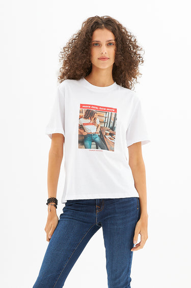 Material: 100% Premium Cotton for maximum breathability and comfort. Fit: Standard unisex fit—size up for an oversized streetwear look. Color: Crisp White with high-contrast graphic print. Origin: Designed for the modern urban lifestyle.