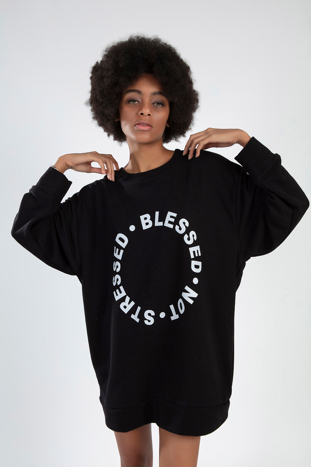 Ready to dominate your next OOTD? The Blessed Black Sweatshirt is the essential piece your wardrobe has been begging for. Designed with a relaxed, oversized silhouette and a bold circular graphic, this top delivers that high-end aesthetic without the designer price tag. Whether you are hitting the city streets or capturing content for the feed, this sweatshirt ensures you look as good as you feel. ✨