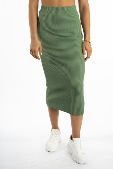 This midi-length skirt features a soft-touch ribbed knit blend designed for maximum durability and shape retention. Available in Blue, Cream, and Green to match your seasonal palette. ✨